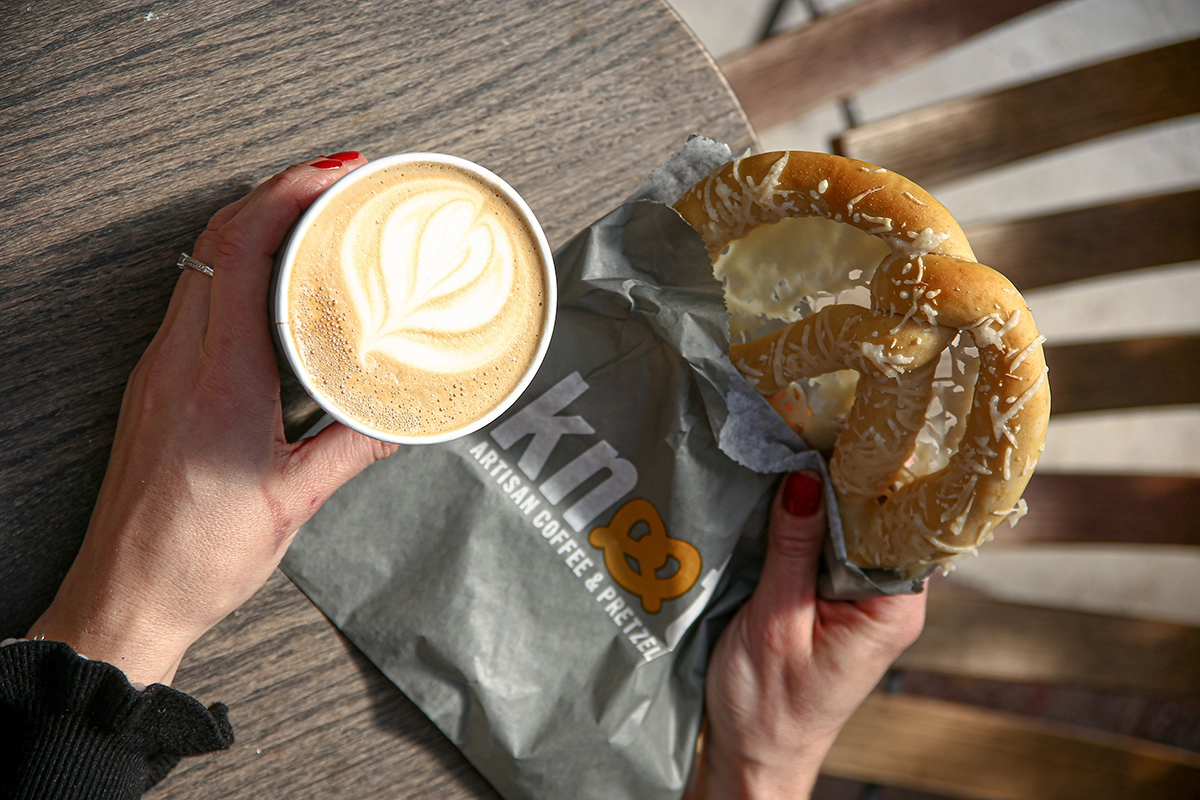 “I stop every day on my way to work, to get my cup of absolutely the best coffee ever. The pretzels are so tasty. Love the staff they are fantastic, and fun too with the daily quiz. Makes such a nice start to my day.”